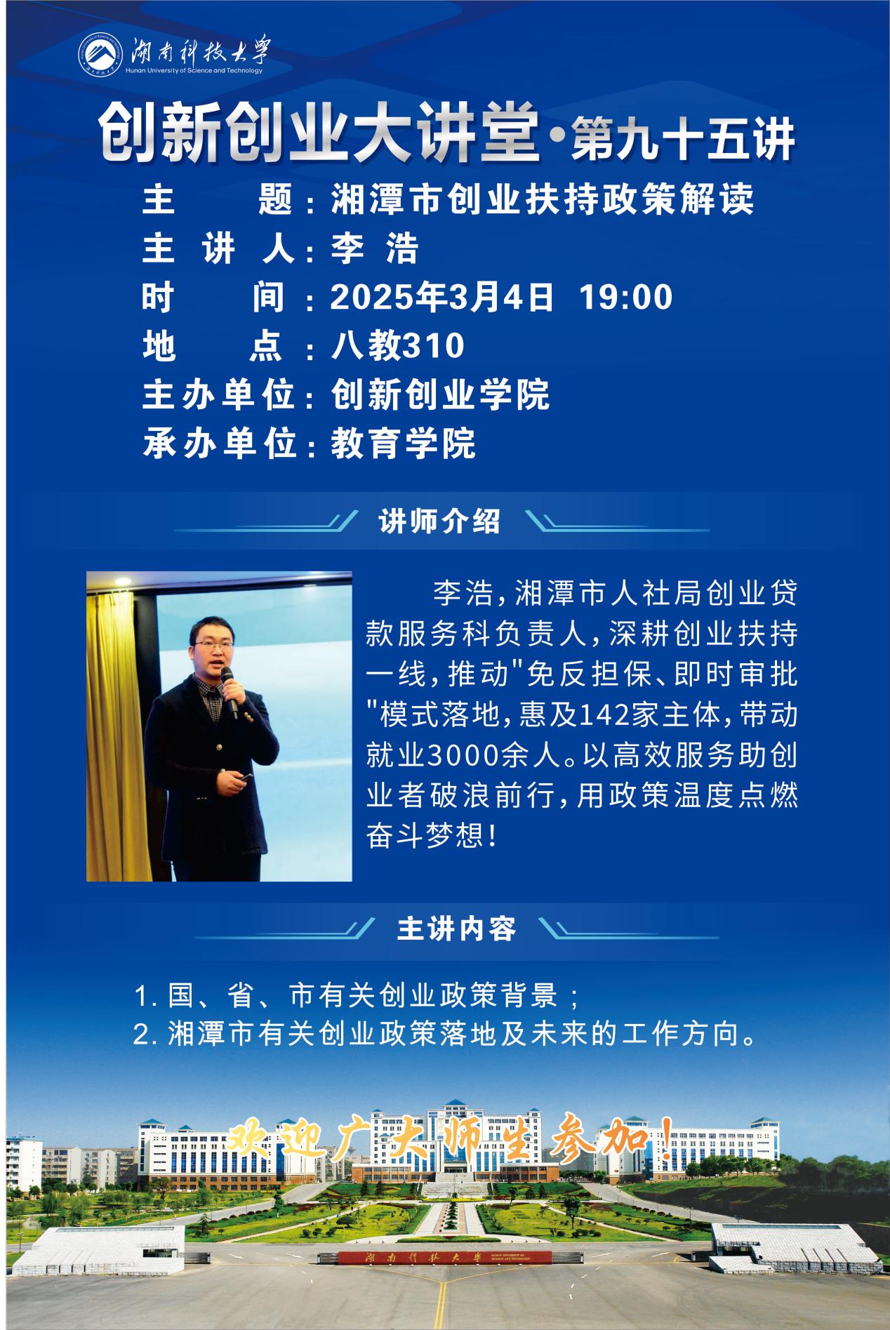 【第95讲海报】湘潭市创新创业扶持政策解读