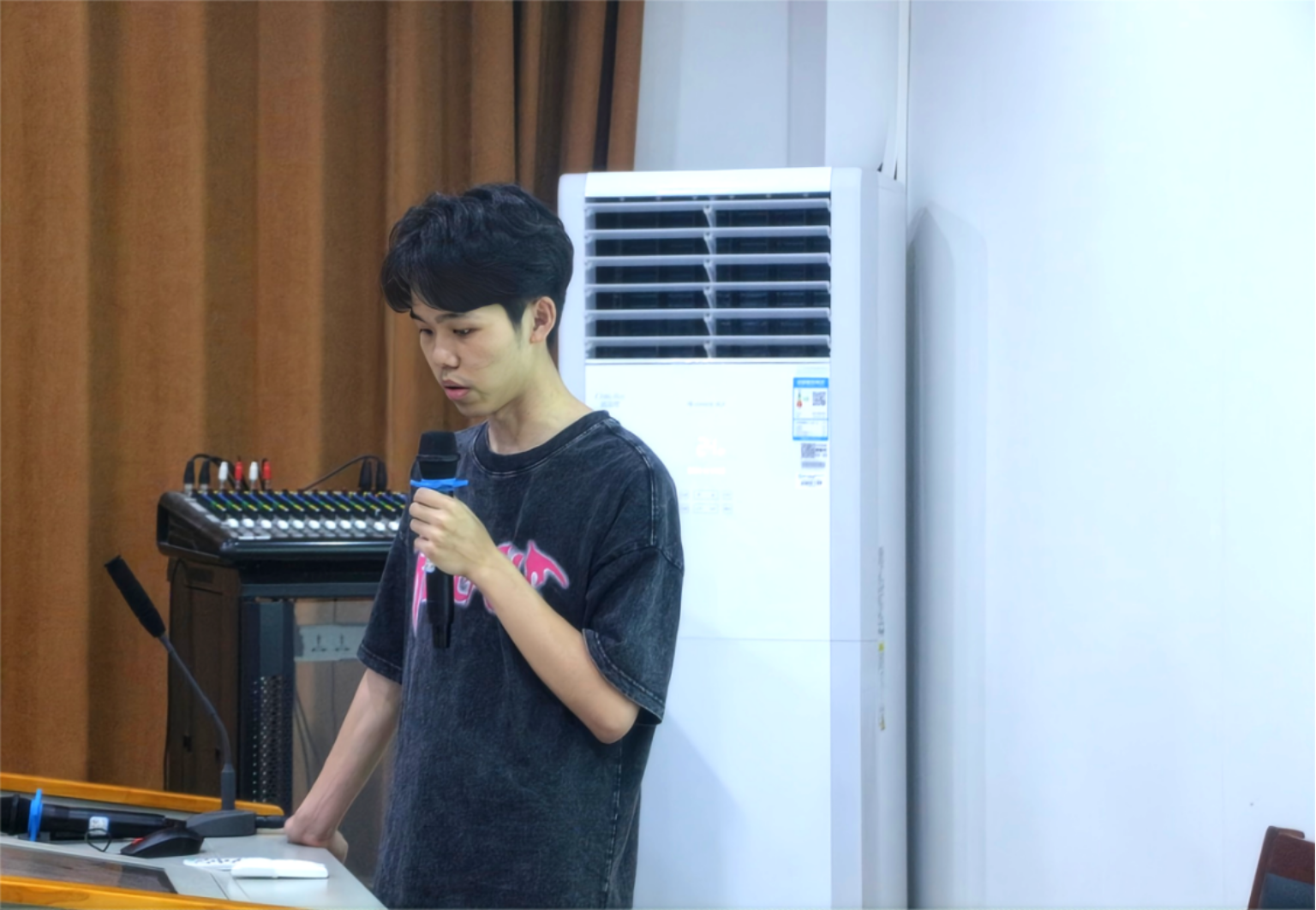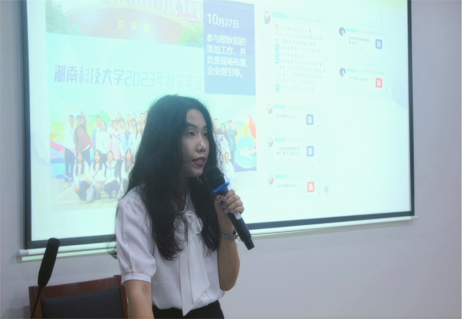 ▲创业培训助理团罗焮琪代表部门做述职
