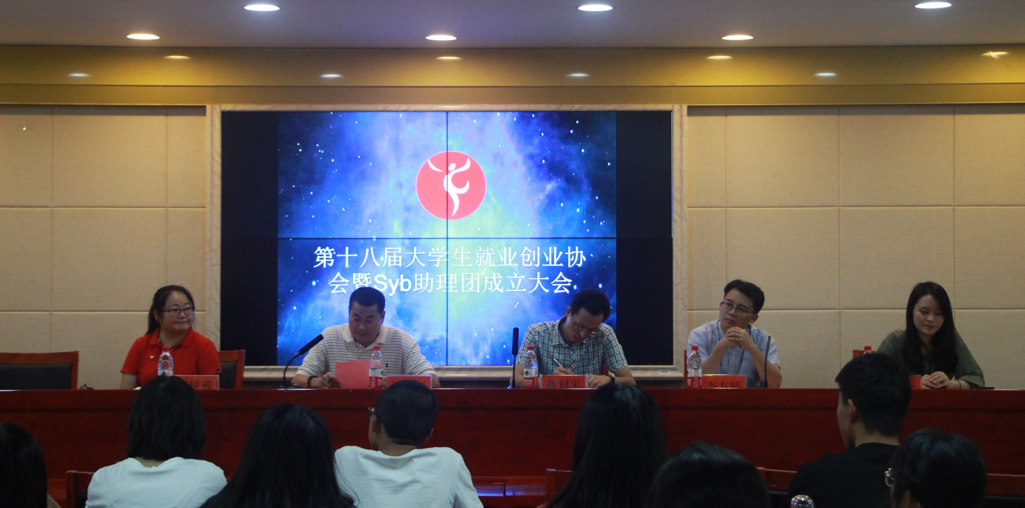 2019年9月29日中午12:30,第十八届大学生就业创业协会暨SYB创业培训助理团成立大会在yl88858永利集团立功楼3-2报告厅如期举行。