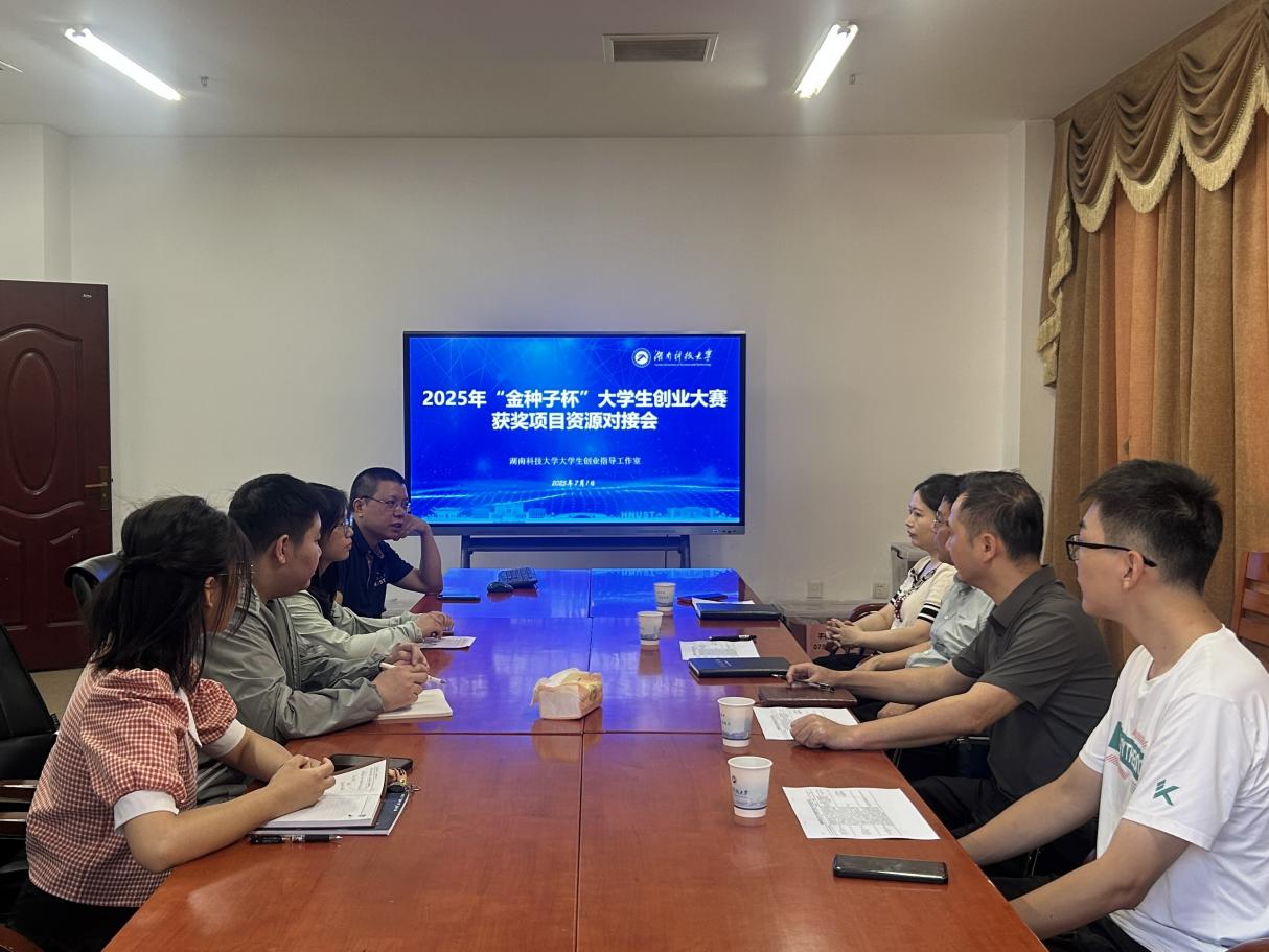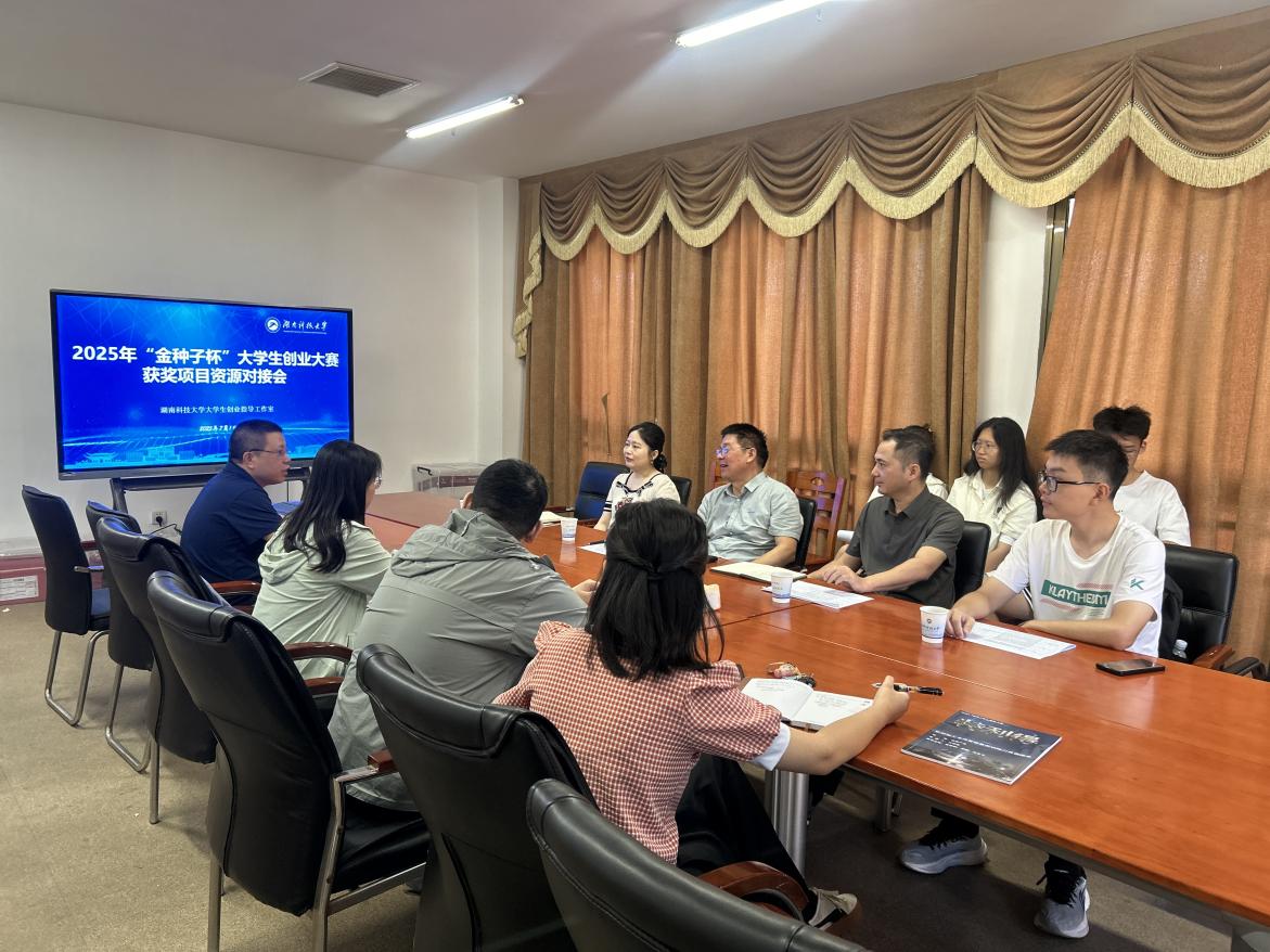 为精准赋能大学生创新创业项目成长,搭建优质资源对接平台,7月2日,湘潭高新区创新创业服务中心主任朱知义、副主任高艳一行四人莅临我校,专项开展“金种子杯”大学生创业大赛获奖项目资源对接需求征集会。我校创新创业学院院长刘东海及部分“金种子杯”获奖项目负责人共同参会,就项目发展面临的难题与需求展开深入交流与对接。